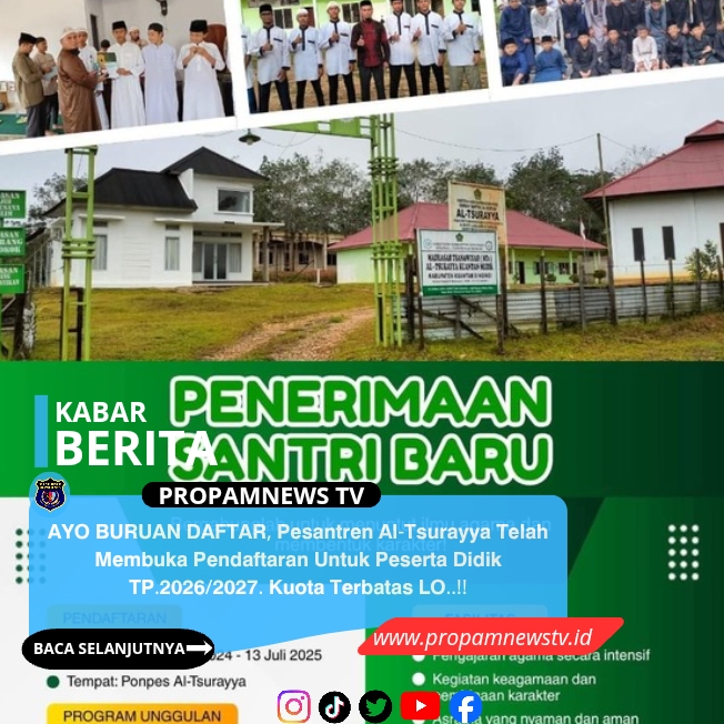 “Mari Sekolahkan Putra kita dipondok Pesantren Al-Tsurayya, Untuk mendapatkan Pendidikan Agama Yang baik dan juga Pendidikan Umum yang Mumpuni, demi generasi Emas dimasa yang akan datang” Harapnya. (Selasa,20/02/2026)