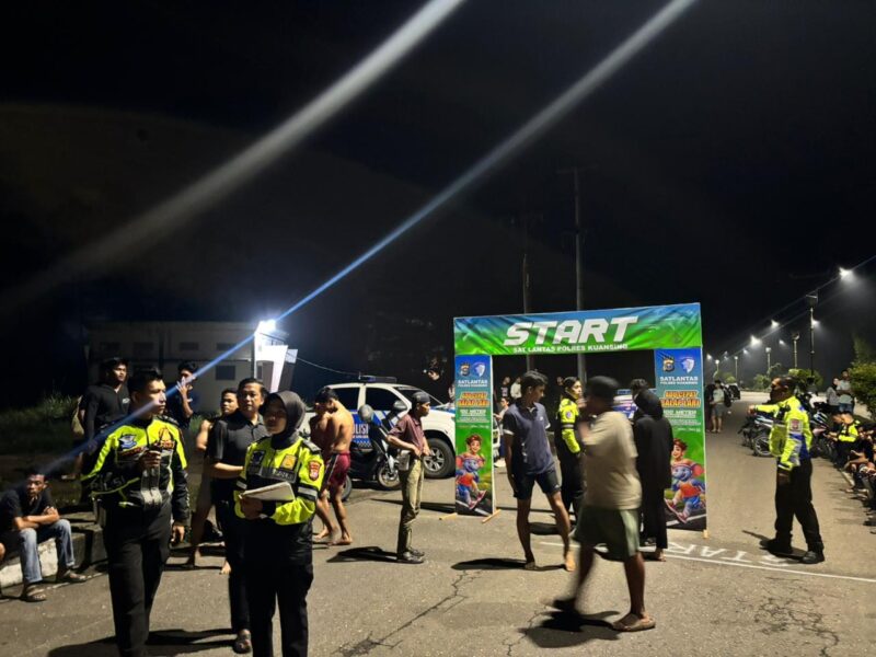Ratusan warga tumpah ruah menyaksikan digelarnya Lomba Lari 100 Meter bertajuk “Green Policing” yang diinisiasi oleh Polres Kuantan Singingi. Acara yang dimulai sekitar pukul 22.00 WIB ini menjadi ajang positif bagi 112 peserta dari berbagai kalangan untuk menunjukkan bakat mereka di lintasan lari.
