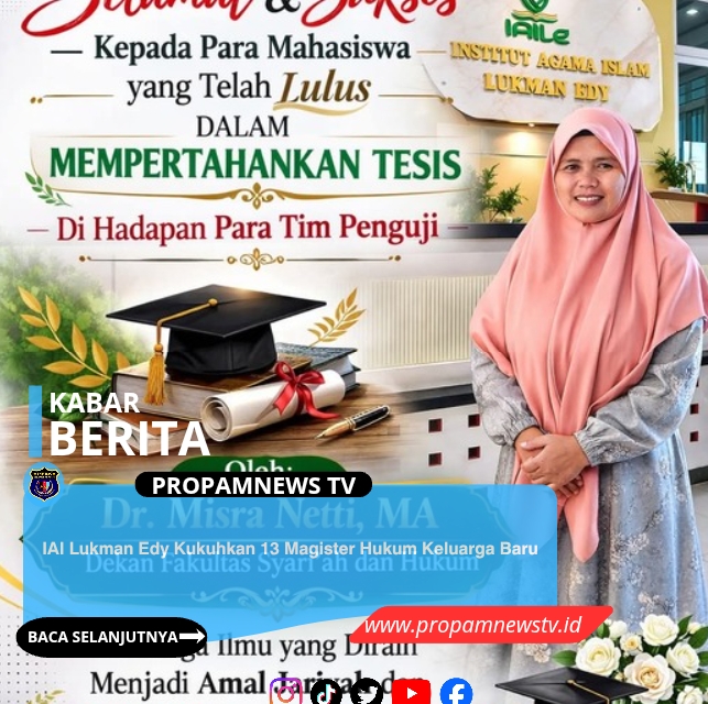 PEKANBARU RIAU, // PropamNewstv.id โ Institut Agama Islam (IAI) Lukman Edy Pekanbaru kembali mencetak sumber daya manusia unggul di bidang hukum.