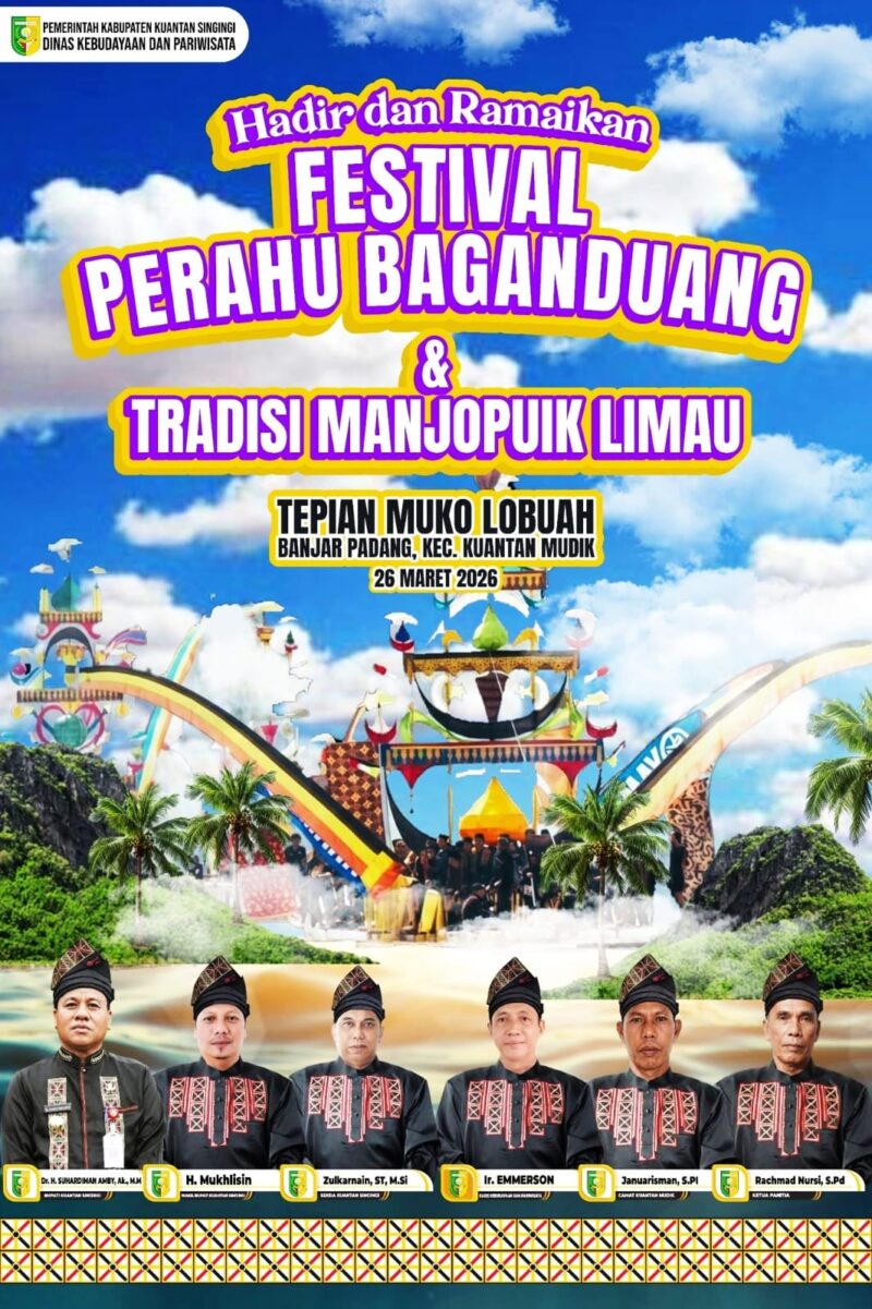 KUANSING RIAU,//Propamnewstv.id โ€“ Pemerintah Kabupaten Kuantan Singingi melalui Dinas Kebudayaan dan Pariwisata akan menyelenggarakan perhelatan budaya tahunan “Festival Perahu Baganduang & Tradisi Manjopuik Limau” yang dipusatkan di Tepian Muko Lobuah, Banjar Padang, Kecamatan Kuantan Mudik pada tanggal 26 Maret 2026.