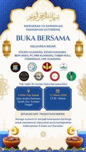 RIAU //propamnewstv.id/ โ Sejumlah organisasi kemasyarakatan, kemahasiswaan, serta instansi kepolisian di Kabupaten Kuantan Singingi (Kuansing) menggelar kegiatan buka puasa bersama yang dipusatkan di Coffee Tepi Sawah, Jalan Jenderal Sudirman, Sawah, Kecamatan Kuantan Tengah, pada Rabu, 11 Maret 2026. Kegiatan yang mengusung tema “Satukan Hati, Tingkatkan Sinergi” ini bertujuan mempererat tali silaturahmi antar elemen masyarakat dan pihak keamanan di bulan suci Ramadan.