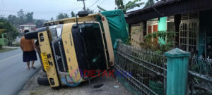 RIAU //propamnewstv.id/ โ Sebuah truk Mitsubishi Colt Diesel bernomor polisi BM 9297 FU mengalami kecelakaan tunggal di Desa Jake, Kecamatan Kuantan Tengah, Kabupaten Kuantan Singingi, Riau, pada Senin (10/3/2026) sekitar pukul 04.00 WIB. Diduga pengemudi mengantuk saat melintas, truk tersebut keluar dari badan jalan dan menghantam pagar rumah warga.โKecelakaan terjadi saat truk melaju dari arah Pekanbaru menuju Teluk Kuantan. Sesampainya di lokasi kejadian pada waktu subuh, kendaraan diduga hilang kendali, keluar dari badan jalan, hingga akhirnya terguling dan menabrak pagar milik warga setempat.