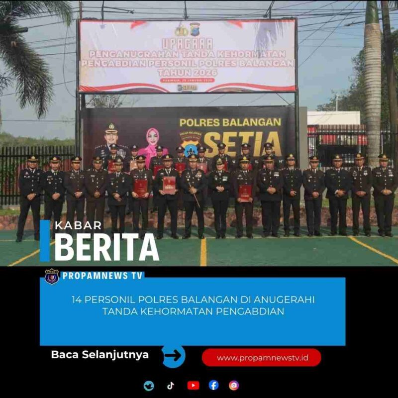 Balangan, // PropamNewstv.id – Polres Balangan, Polda Kalsel. Kepolisian Resor (Polres) Balangan menggelar upacara penganugerahan Tanda Kehormatan Satyalancana Pengabdian kepada personel yang telah menunjukkan dedikasi dan loyalitas dalam pengabdian kepada bangsa dan negara. Kegiatan tersebut berlangsung di halaman Mapolres Balangan, Kamis pagi (29/01/2026).