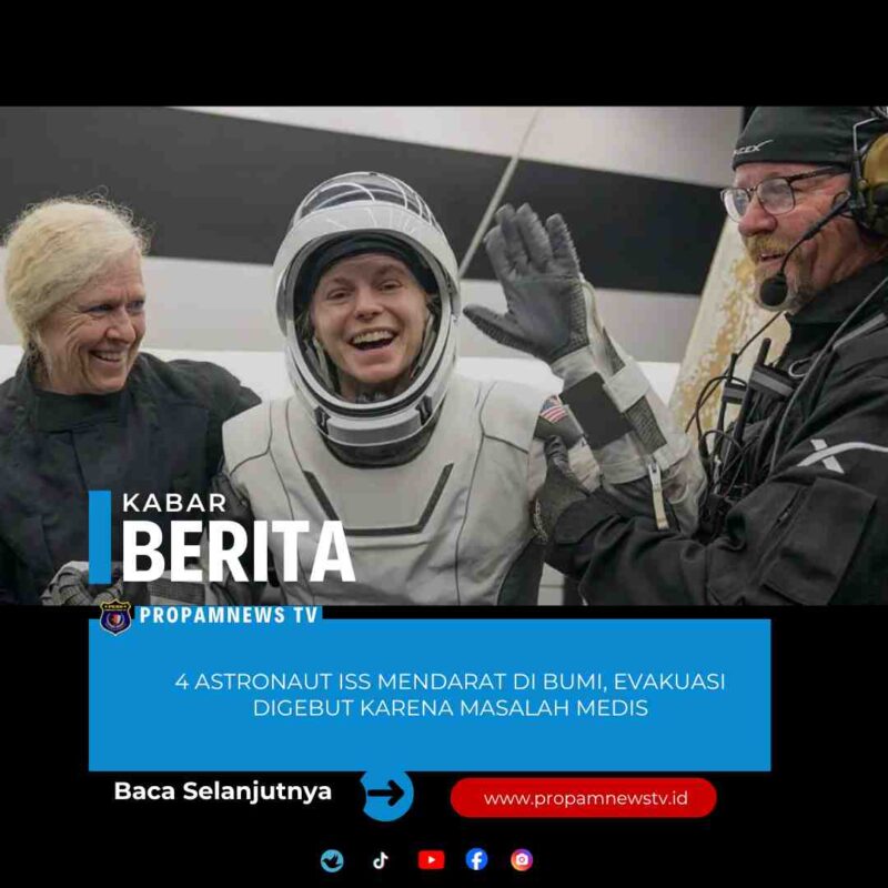 DUNIA //propamnewstv.id – Empat astronaut yang dievakuasi dari Stasiun Luar Angkasa Internasional (ISS) telah mendarat di Bumi, Kamis (15/01). Masa tinggal mereka di luar angkasa dipersingkat satu bulan lantaran masalah medis yang dianggap serius.
