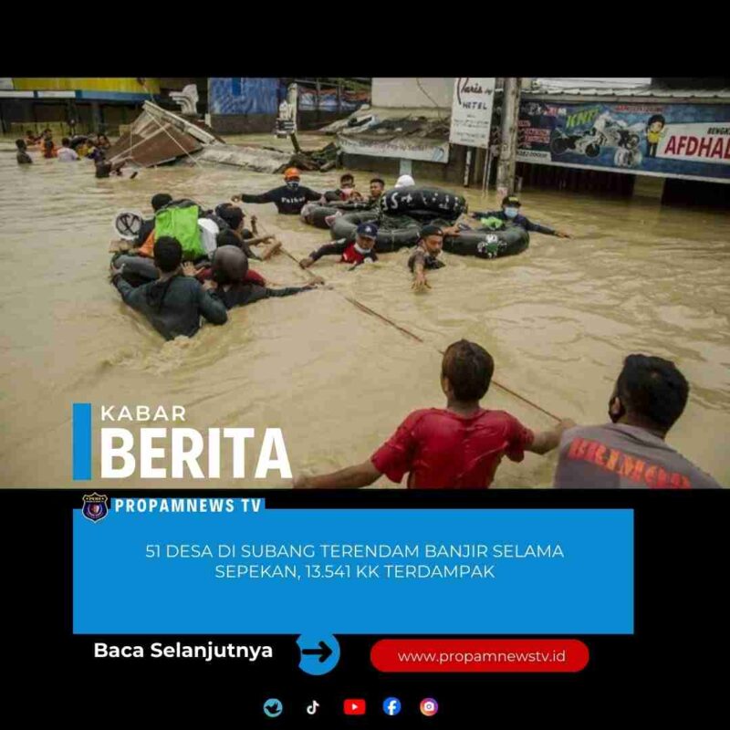 Subang, // PropamNewstv.id – Badan Penanggulangan Bencana Daerah (BPBD) Kabupaten Subang, Jawa Barat, mencatat banjir yang terjadi sejak sepekan terakhir telah merendam ribuan rumah warga.