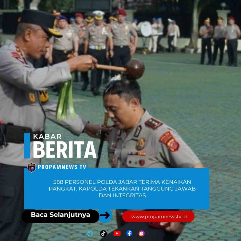 Bandung // PropamNewstv.id — Kepolisian Daerah Jawa Barat menggelar upacara kenaikan pangkat bagi ratusan personelnya. Kegiatan tersebut turut dihadiri oleh Wakapolda Jabar, jajaran Pejabat Utama (PJU), personel yang menerima kenaikan pangkat, serta perwakilan Bhayangkari Polda Jabar.