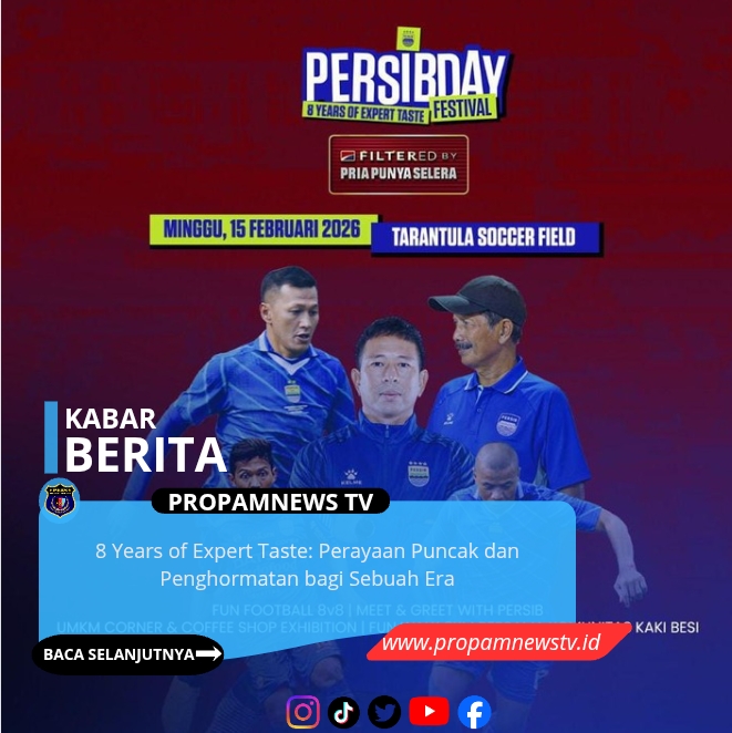 BANDUNG, // PropamNewstv.id — Delapan tahun bukan sekadar hitungan waktu dalam kalender. Ia menjelma menjadi monumen tentang konsistensi, komitmen, dan keberanian menjaga rasa di tengah perubahan zaman. Menandai akhir perjalanan kolaborasi ikonik, PERSIB Bandung bersama Gudang Garam International Filter menghadirkan PERSIBDay Festival bertajuk “8 Years of Expert Taste.”