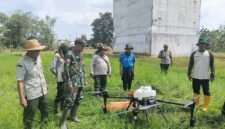 Dukung Modernisasi Pertanian, Babinsa Koramil 1002-08/Labuan Amas Utara Kawal Uji Coba Drone Pemupukan