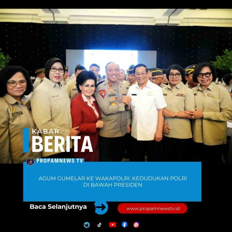 Jakarta //propamnewstv.id — Kamis, 29 Januari 2026 Ketua Umum Persatuan Purnawirawan dan Warakawuri TNI–Polri (PEPABRI), Jenderal TNI (Purn) Agum Gumelar, menegaskan bahwa kedudukan Polri yang berada langsung di bawah Presiden Republik Indonesia, Penegasan tersebut disampaikan kepada Wakil Kepala Kepolisian Negara Republik Indonesia (Wakapolri) Komjen Pol Prof. Dr. Dedi Prasetyo, S.H., M.Hum., M.Si., M.M., saat menghadiri Musyawarah Nasional (Munas) VI Persatuan Purnawirawan (PP) Polri Tahun 2026.