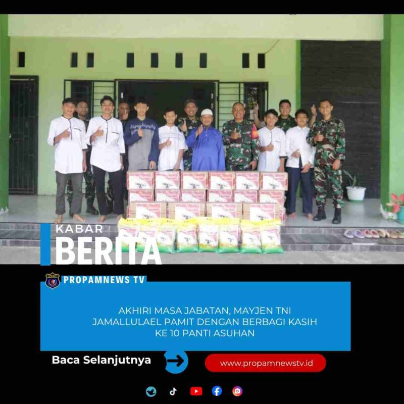 Mayjen TNI Jamallulael menutup pengabdiannya di Bumi Khatulistiwa dengan sebuah aksi kemanusiaan yang menyentuh hati. Sebagai bentuk syukur atas kelancaran tugasnya, jenderal bintang dua ini menyalurkan santunan kepada anak-anak yatim di 10 panti asuhan yang tersebar di wilayah Kota Pontianak dan Kabupaten Kubu Raya, Jumat (16/1/2026).