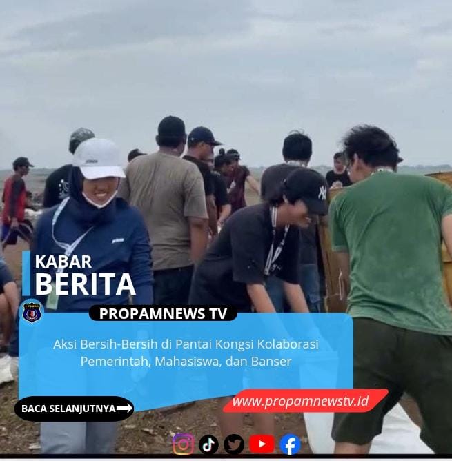 INDRAMAYU, // PropamNewstv.id – Pemerintah Kecamatan Patrol bersama Pemerintah Desa Sukahaji berkolaborasi dengan mahasiswa Kuliah Kerja Nyata (KKN) Universitas Padjadjaran (Unpad) serta anggota Barisan Ansor Serbaguna (Banser) menggelar aksi bersih-bersih di Pantai Kongsi.