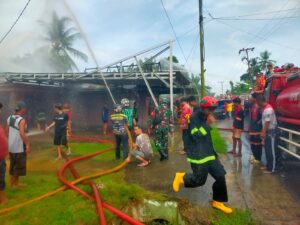 Babinsa Koramil 1002-02/Barabai Serma Sudarwanto yang berada di wilayah binaan turut bergerak cepat mendatangi lokasi kejadian dan membantu proses pemadaman bersama warga, relawan, serta petugas pemadam kebakaran.