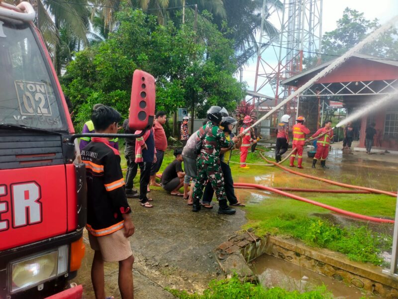 Babinsa Koramil 1002-02/Barabai Serma Sudarwanto yang berada di wilayah binaan turut bergerak cepat mendatangi lokasi kejadian dan membantu proses pemadaman bersama warga, relawan, serta petugas pemadam kebakaran.