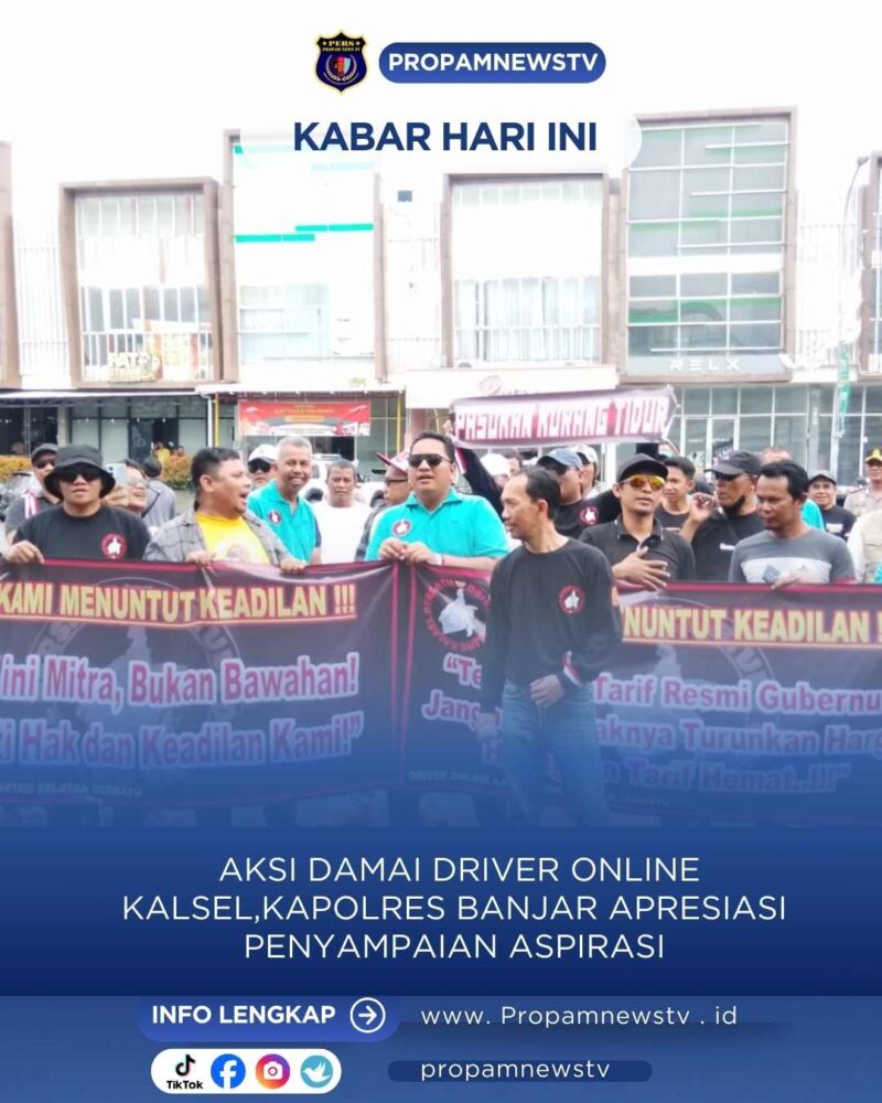 Aksi demonstrasi yang digelar oleh Driver Online Kalimantan Selatan Bersatu (DOKB) di depan kantor perwakilan Grab, Kabupaten Banjar, pada Selasa (2 Desember 2025) berjalan dengan damai dan kondusif. Kapolres Banjar, AKBP Drs. Fadli, S,. H, SIK, MSi, terjun langsung dalam pengamanan aksi tersebut.