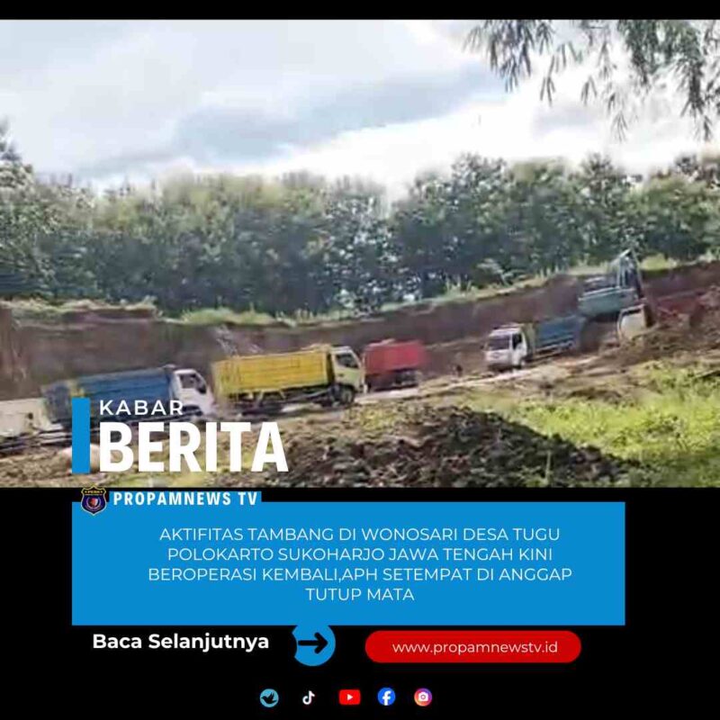 Sukoharjo 02/01/2026 //propamnewstv.id – Kembalinya Aktifitas galian C di lokasi yang sama di polokarto yang semula sempat berhenti beberapa hari kini mulai kembali lagi beroprasi seperti semula padahal lokasi tersebut tidak jauh dari kantor polisi Sektor polokarto Resort Sukoharjo yang berada di jalan provinsi berdekatan Polsek Jumantono Polres Karanganyar Jawa Tengah,seolah tak tersentuh pihak aparat penegak hukum maupun dari pihak kementrian ESDM apakah memang benar ada pemberian atensi dari pengelola tambang galian