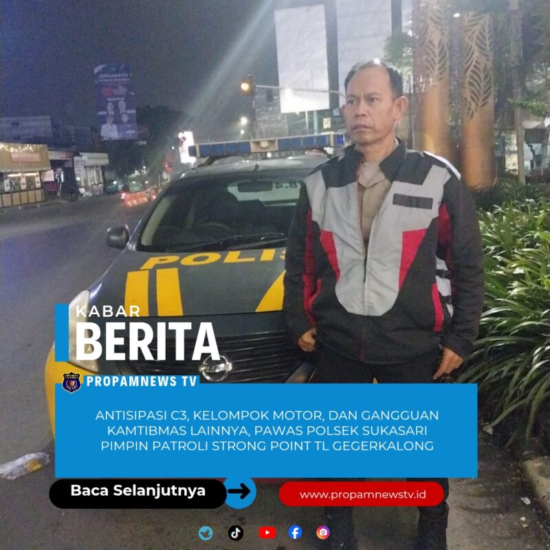 Bandung, // PropamNewstv.id – Dalam rangka mengantisipasi gangguan keamanan dan ketertiban masyarakat (kamtibmas), Perwira Pengawas (Pawas) Polsek Sukasari memimpin giat patroli Strong Point di Traffic Light (TL) Gegerkalong, Jalan Setiabudi, Kelurahan Gegerkalong, Kecamatan Sukasari, Kota Bandung, Sabtu (31/1/2026).