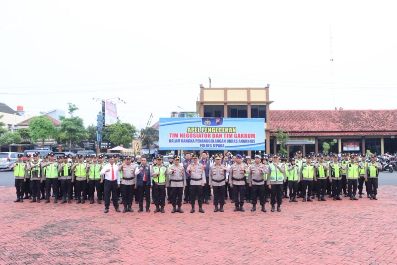 Antisipasi Unjuk Rasa Anarkis, Polres Jepara Gelar Apel Pengecekan Tim Negosiator dan Gakkum
