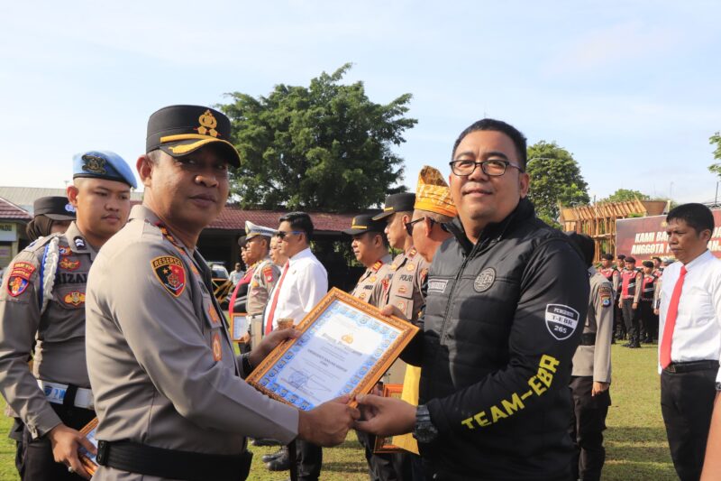 Rangkaian kegiatan apel ditutup dengan penyerahan penghargaan oleh Kapolres Banjar kepada personel Polres Banjar yang menunjukkan dedikasi dan prestasi luar biasa dalam pelaksanaan tugas, sebagai bentuk apresiasi pimpinan terhadap kinerja anggota di lapangan.
