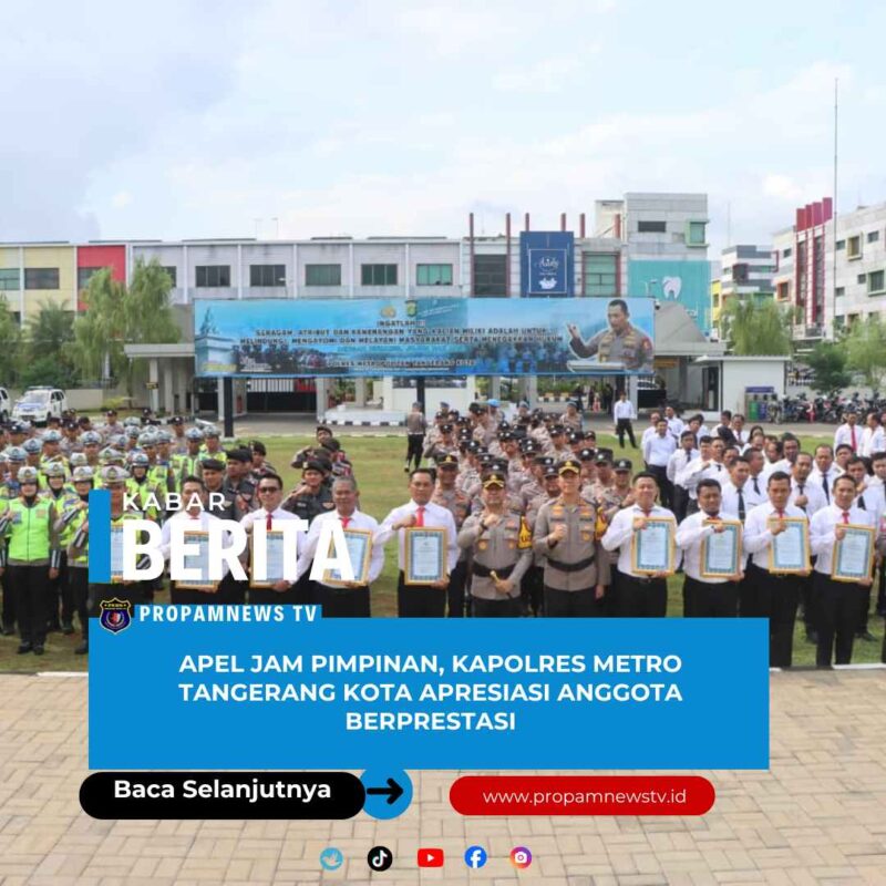 Tangerang // propamnewstv.id — Polres Metro Tangerang Kota menggelar Apel Jam Pimpinan sekaligus Pemberian Penghargaan kepada Anggota Berprestasi, yang dilaksanakan pada Selasa, 23 Desember 2025, bertempat di Lapangan Apel Polres Metro Tangerang Kota.