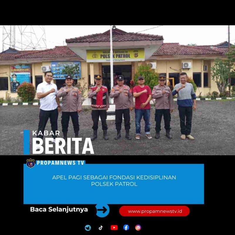 Indramayu, // PropamNewstv.id – Apel Pagi Anggota Polsek Patrol, Polres Indramayu. Apel pagi merupakan kegiatan rutin yang dilakukan oleh anggota Kepolisian untuk memastikan kesiapan dan kedisiplinan dalam menjalankan tugas sehari-hari. Kegiatan ini juga berfungsi sebagai sarana penyampaian informasi penting dan arahan dari pimpinan kepada seluruh anggota.