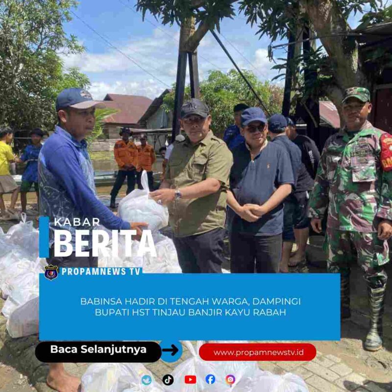 BARABAI, // PropamNewstv.id – Babinsa Koramil 1002-05/Pandawan Sertu Sugianto turut mendampingi Bupati Hulu Sungai Tengah (HST) Samsul Rizal bersama Wakil Bupati H Gusti Rosyadi Elmi dan Ketua Komisi I DPRD HST Yajid Fahmi saat meninjau langsung kondisi banjir yang masih merendam Desa Kayu Rabah, Kecamatan Pandawan, Kabupaten Hulu Sungai Tengah, Sabtu (10/01/2025).