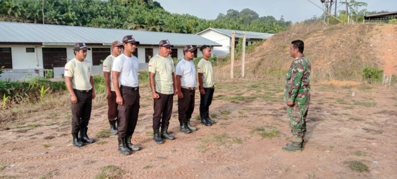 Sekadau//propamnewstv.id– Babinsa Koramil 13/Belitang Hulu Sertu Setiyadi melaksanakan kegiatan pelatihan Peraturan Baris Berbaris (PBB) kepada para satuan pengamanan (Satpam) di Desa Mangaret Kecamatan Belitang Hulu Kabupaten Sekadau pada Sabtu, ( 15/11/ 2025 )