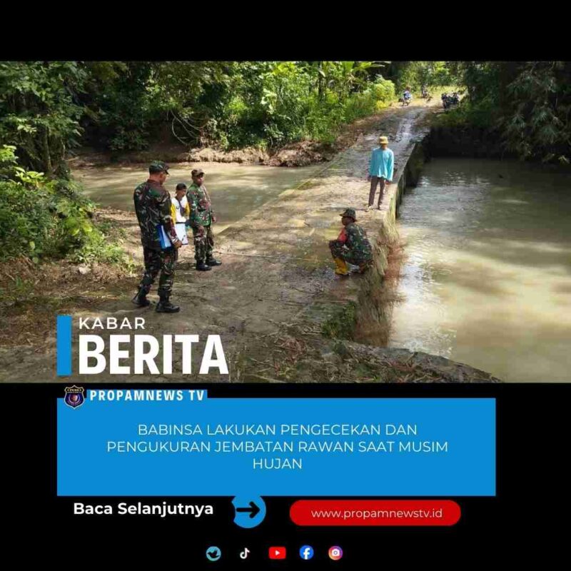 Dalam kegiatan tersebut, Sertu Heri turun langsung ke lokasi jembatan untuk mengecek kondisi fisik bangunan, mulai dari tiang penyangga, badan jembatan, hingga aliran air di bawahnya. Selain itu, Ia juga melakukan pengukuran lebar dan ketinggian jembatan serta memperhatikan kondisi tanah di sekitar yang berpotensi tergerus akibat derasnya aliran air saat hujan.
