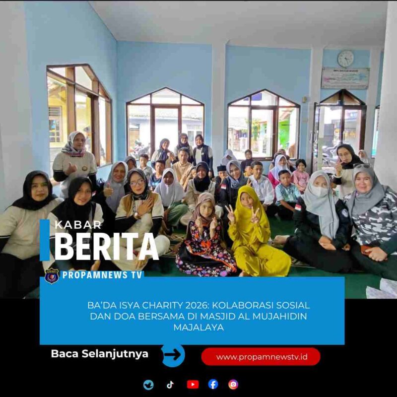 Kabupaten Bandung, // PropamNewstv.id – Masjid Al Mujahidin RT 02 RW 10 Desa Majasetra, Kecamatan Majalaya, menjadi pusat kegiatan sosial Ba’da Isya Charity pada Sabtu malam, 10 Januari 2026. Kegiatan ini digelar bertepatan dengan peringatan Isra Mi’raj Nabi Muhammad SAW dan dihadiri berbagai elemen masyarakat.