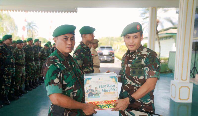 Sintang – //PropamNewsTv.id-Menyambut Hari Raya Idul Fitri 1447 Hijriah, Komandan Korem 121/Abw Brigjen TNI Purnomosidi, S.I.P., M.A.P., M.Han., menyerahkan Tunjangan Hari Raya (THR) dan bingkisan Lebaran kepada prajurit dan Pegawai Negeri Sipil (PNS) Korem 121/Abw. Kegiatan tersebut dilaksanakan di Halaman Depan Korem 121/Abw, Sintang, Kalimantan Barat, Selasa (17/03/2026).