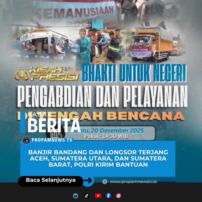 Jakarta//propamnewstv.id — Bencana banjir bandang dan longsor melanda beberapa wilayah di Aceh, Sumatera Utara, dan Sumatera Barat, menyebabkan ribuan warga kehilangan rumah, harta benda, dan orang tercinta. Dalam situasi sulit ini, Polri menunjukkan kepedulian dengan menyalurkan bantuan kemanusiaan dan menerjunkan personel ke lokasi terdampak.