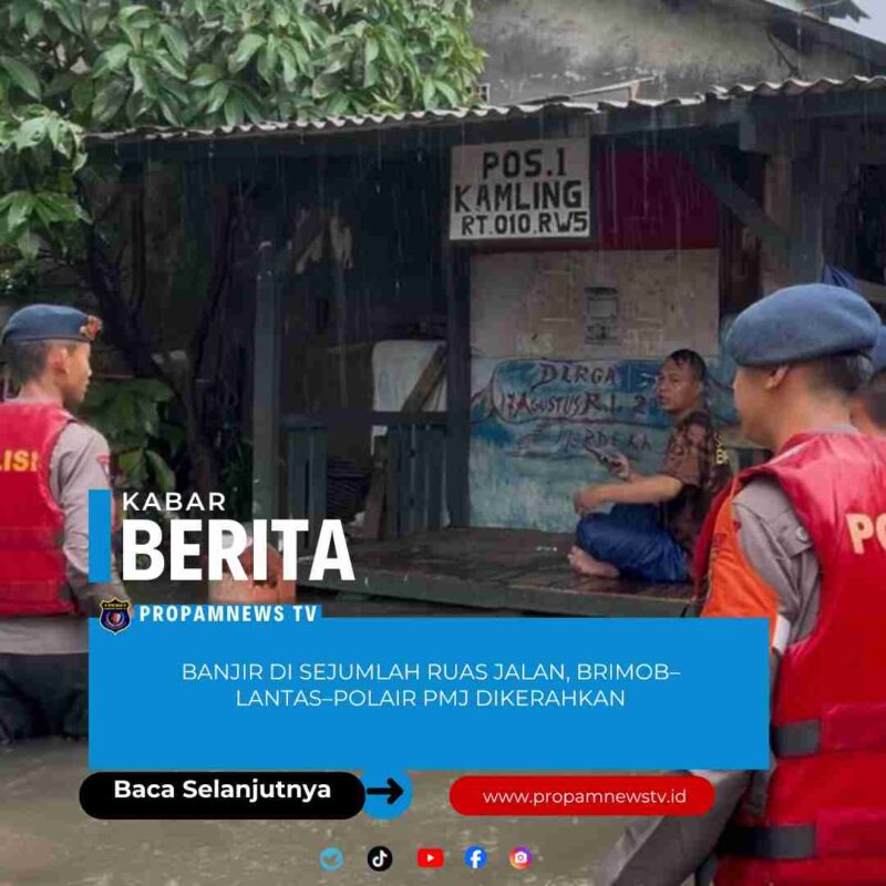 Jakarta, // PropamNewstv.id — Banjir yang melanda sejumlah wilayah Jakarta langsung direspons cepat oleh Polda Metro Jaya dengan mengerahkan personel gabungan dari Brimob, Direktorat Lalu Lintas, dan Polair. Langkah ini menegaskan kehadiran negara dalam menjaga keselamatan masyarakat serta menjamin pelayanan publik tetap berjalan di tengah situasi darurat, Kamis (22/1/2026).