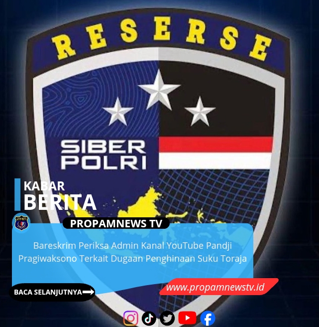 Jakarta, // PropamNewstv.id – Direktorat Tindak Pidana Siber (Dittipidsiber) Bareskrim Polri memeriksa seorang saksi berinisial SB terkait unggahan video di kanal YouTube milik Pandji Pragiwaksono yang diduga memuat unsur penghinaan terhadap suku Toraja.