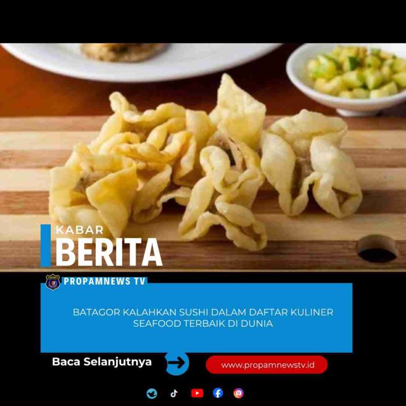 Jakarta, // PropamNewstv.id – Batagor mengalahkan sushi dalam daftar sajian seafood terbaik di dunia versi Taste Atlas. Batagor duduk di posisi 3, sementara nigiri sushi ada di nomor 5.
