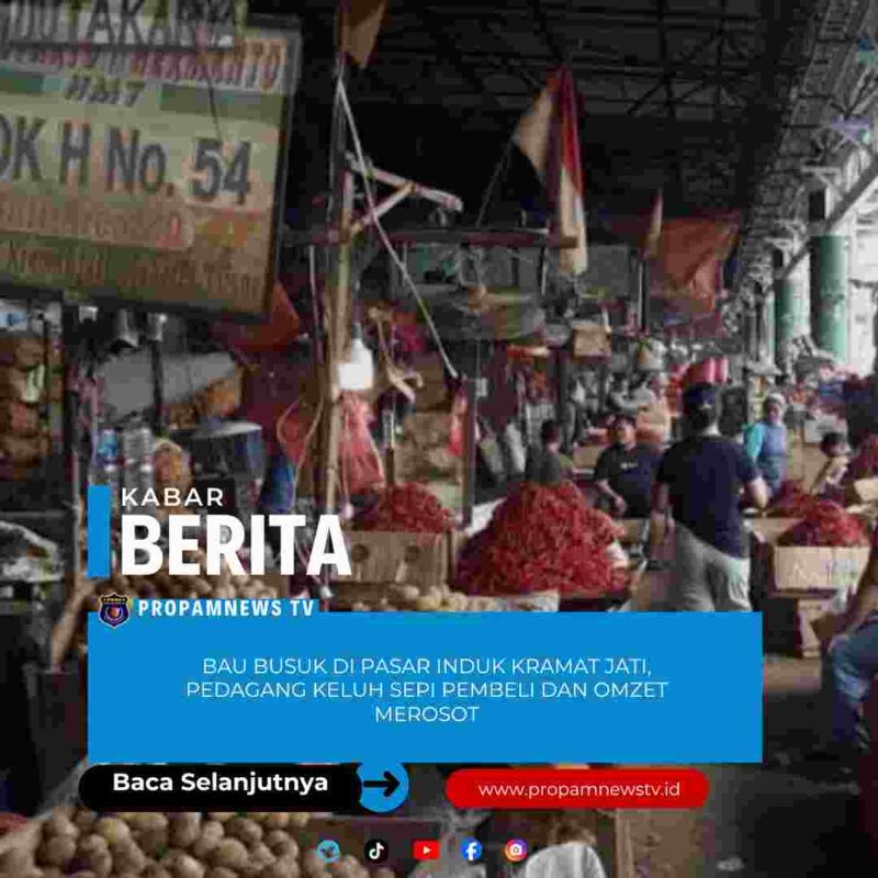 Jakarta, // PropamNewstv.id – Pedagang Pasar Induk Kramat Jati mengeluh sepi pembeli akibat bau busuk dari tumpukan sampah yang sudah menggunung. Sepinya pembeli ini pun membuat omzet pedagang merosot.