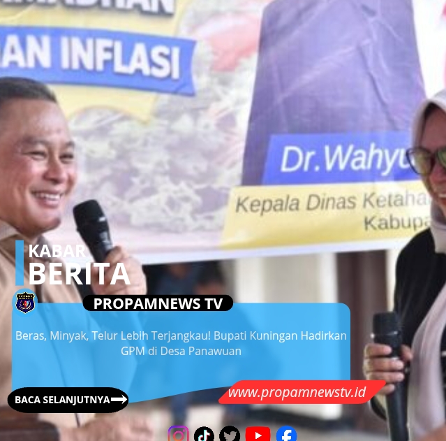 KUNINGAN, // PropamNewstv.id – Bupati Kuningan Dian Rachmat Yanuar secara resmi membuka kegiatan Gerakan Pangan Murah (GPM) “Padaringan” Tahun 2026 di Desa Panawuan, Kecamatan Cigandamekar, Jumat (27/2/2026). Kegiatan yang digelar oleh Dinas Ketahanan Pangan dan Pertanian (Diskatan) ini menjadi bagian dari upaya Pemerintah Kabupaten Kuningan dalam menjaga stabilitas harga dan daya beli masyarakat menjelang Ramadhan dan Idul Fitri.