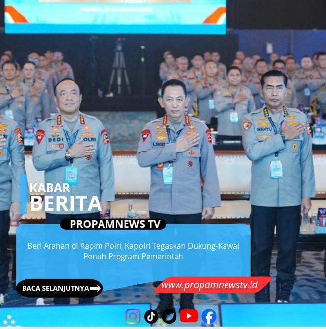 Jakarta, // PropamNewstv.id – Kapolri Jenderal Polisi Drs. Listyo Sigit Prabowo, M.Si. membuka sekaligus memberikan arahan dalam Rapat Pimpinan (Rapim) Polri. Dalam kesempatan tersebut, Kapolri menegaskan komitmen Korps Bhayangkara untuk terus mendukung dan mengawal seluruh program Pemerintah Indonesia.