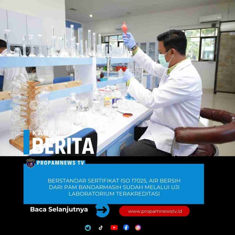 BANJARMASIN, // PropamNewstv.id – Dalam memberikan pelayanan terbaik kepada pelanggan, PAM Bandarmasih terus berupaya meningkatkan kualitas pelayanannya, salah satunya yakni memastikan air yang di distribusi kepelanggan sudah di uji kualitasnya melalui laboratorium yang milik PT AM Bandarmasih yang sudah mendapat Sertifikat ISO 17025 dari Komite Akreditasi Nasional.