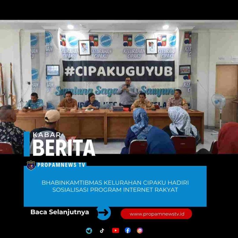 Bogor, // PropamNewstv.id – Bhabinkamtibmas Kelurahan Cipaku, Aiptu Oma Kusnadi, bersama Lurah Cipaku, Bapak Taufik, menghadiri kegiatan sosialisasi program Internet Rakyat yang diselenggarakan oleh PT. Boskam Artha Tama. Sosialisasi disampaikan oleh Saudara Dimas beserta tim kepada masyarakat setempat.