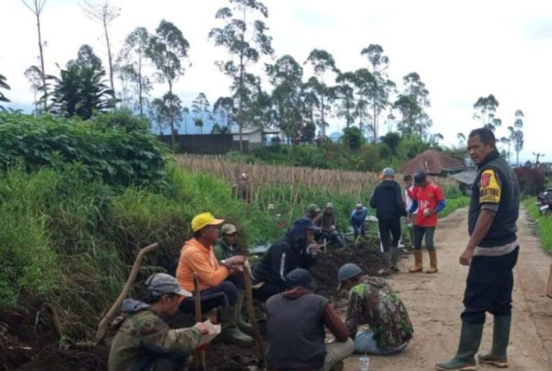 Warga tampak antusias mengikuti kegiatan gotong royong tersebut, sebagai bentuk kepedulian bersama terhadap kebersihan dan keselamatan lingkungan.