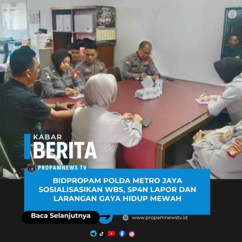 Jakarta —19-12-2025 // PROPAMNEWSTV.ID — Subbidpaminal Bidpropam Polda Metro Jaya menggelar sosialisasi Whistle Blowing System (WBS), SP4N–Lapor, serta larangan gaya hidup mewah (hedonis) kepada personel Direktorat Pembinaan Masyarakat (Ditbinmas) Polda Metro Jaya, Jumat (19/12/2025).
