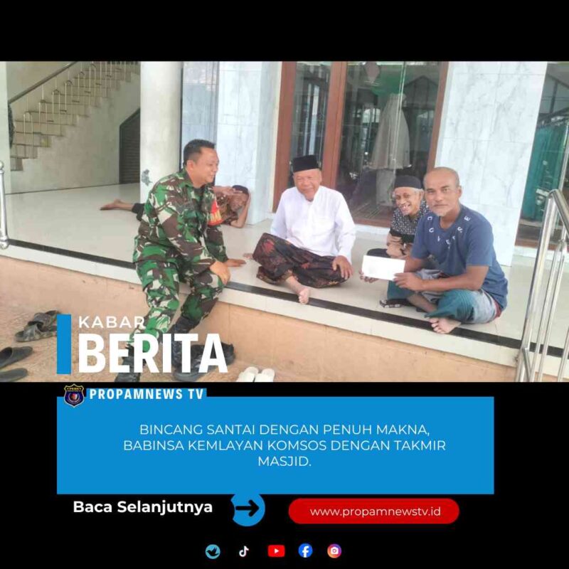 Dalam kegiatan Sambang warga binaan, Babinsa berkomunikasi dengan tak’mir masjid Jami Islam,dalam kesempatan tersebut Babinsa mengajak warga untuk selalu berbuat baik dengan sesama toleransi harus tetap terjaga dengan keberagaman agama,suku dan budaya serta juga selalu menjaga kebersihan dan keamanan lingkungan serta tak lupa Babinsa selalu berikan dukungan dan motivasi kepada warga Tutur Serka Priyanto