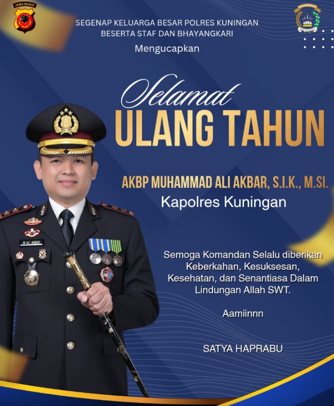 KUNINGAN,//PropamNewsTv.id/– Seluruh jajaran Biro Kuningan menyampaikan ucapan selamat ulang tahun kepada AKBP Muhammad Ali Akbar, Kapolres Kuningan, yang terus menunjukkan dedikasi dan komitmen tinggi dalam menjaga keamanan serta ketertiban masyarakat.