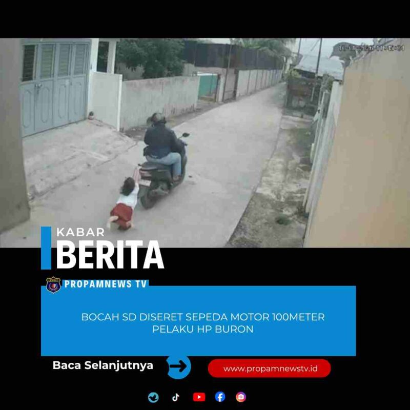 Medan, // PropamNewstv.id – Seorang bocah perempuan yang masih duduk di bangku sekolah dasar (SD) terseret sepeda motor sejauh 100 meter, saat mempertahankan ponselnya yang dicuri seorang pria bermotor.