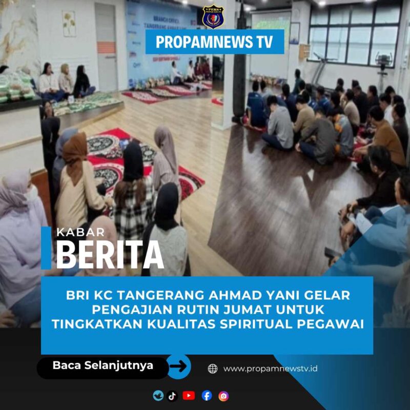 Tangerang // propamnewstv.id – Dalam rangka memperkuat nilai-nilai spiritual sekaligus menjaga produktivitas kerja, BRI Kantor Cabang Tangerang Ahmad Yani secara konsisten menyelenggarakan kegiatan pengajian rutin setiap hari Jumat. Program ini menjadi salah satu langkah penting dalam meningkatkan kualitas kerohanian pegawai agar tetap seimbang antara tugas profesional dan pembinaan spiritual.
