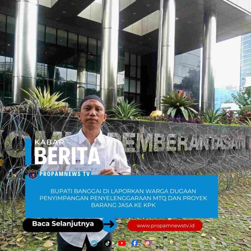 Jakarta // PropamNewstv.id — Seorang warga bernama Supriyadi dari Lembaga Sahabat KPK secara resmi melaporkan dugaan penyimpangan Bupati Banggai AT dalam penyelenggaraan Musabaqah Tilawatil Quran (MTQ) serta proyek pengadaan barang dan jasa di Kabupaten Banggai ke Komisi Pemberantasan Korupsi (KPK), Senin (5/1/2026).