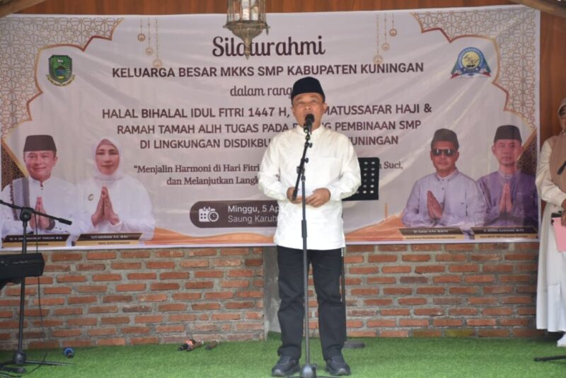 KUNINGAN,//PropamNewsTv.id/— Bupati Kuningan Dian Rachmat Yanuar mengajak seluruh insan pendidikan memperkuat kebersamaan dan komitmen dalam memajukan dunia pendidikan. Ajakan itu disampaikan dalam kegiatan halalbihalal Keluarga Besar MKKS SMP Kabupaten Kuningan di Saung Karuhun 2, Minggu (5/4/2026).