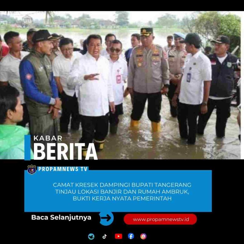 Tangerang, // PropamNewstv.id – Camat Kresek, Eka Fathusidki, mendampingi Bupati Tangerang turun langsung ke sejumlah titik lokasi banjir dan rumah ambruk di wilayah Kecamatan Kresek akibat curah hujan tinggi yang terjadi sejak Selasa malam hingga Rabu pagi, (14/1/2026).