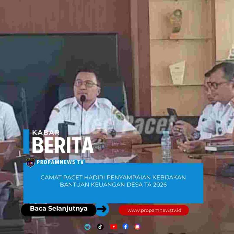 Kabupaten Bandung, // PropamNewstv.id — Camat Pacet, Asep Susanto, S.STP., M.M., menghadiri kegiatan Penyampaian Kebijakan Bantuan Keuangan Desa Tahun Anggaran 2026 yang dilaksanakan di Ruang Rapat Dinas Pemberdayaan Masyarakat dan Desa (DPMD) Kabupaten Bandung, Rabu (7/1/2026).