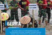 SANGGAU, // PropamNewstv.id – Kasrem 121/Abw Kolonel Inf Dadang Ismai Marzuki, S.I.P., tanam padi perdana di Lahan Ketahanan Pangan Batalyon Infanteri TP 833/Bumi Daranante…