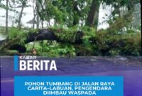 Pandeglang Selasa ( 16/12/2025 ) // propamnewstv.id — Telah terjadi pohon tumbang di jalan raya Carita labuan, Sukarame km 12 Sukarame kecamatan Carita kabupaten…